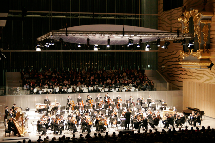 Maar wie denkt dat dit alles vooral een esthetisch effect beoogt, die heeft het mis. Alles staat namelijk, zoals het een concertzaal betaamt, in dienst van de oren. Alle gebruikte materialen zoals het goud, het glas van de ramen, evenals de zilveren aluminium vloeren en zelfs de fluwelen stof van de stoelen, zijn gekozen vanwege hun weerkaatsend ofwel absorberend effect op de akoestiek. Boven het orkest hangt een doorzichtig luchtkussen, wat een canopy wordt genoemd. Hierdoor horen de orkestleden zichzelf in real time. Om deze reden is dit voor hen ook een perfecte oefenruimte.