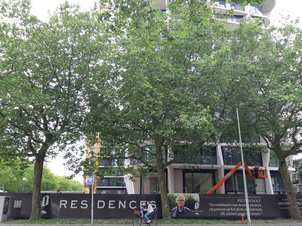 Drie jaar geleden zaten we ook al eens in deze buurt, en er is best wat veranderd in de tussentijd. De Jumbo heeft nu vooral zelfscankassa’s, en bij de bemande kassa staat een automaat die contant geld verwerkt. Het contact tussen medewerkers en klanten wordt tot een minimum beperkt. Op de hoek van de Buitenveldertselaan verrijst een futuristich uitziende wolkenkrabber met veel golvende lijnen. Opvallend is dat met de reclameborden rondom het gebouw niet het gebouw zelf, maar het aan te leggen beplanting op het middenplein, de ‘plaza’ worden aangeprezen, ontworpen door de beroemde tuinarchitect Piet Oudolf.