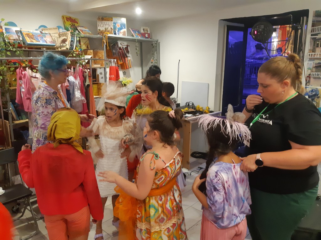 In de eerste weken, onder leiding van kleermaakster Patrizia, waren de pakken dus vooral kleurrijk en vrolijk. De kindsterretjes kwamen ze voor het eerst passen, en het was ontzettend leuk om ze te zien rondrennen, uitgelaten in hun nieuwe outfit.