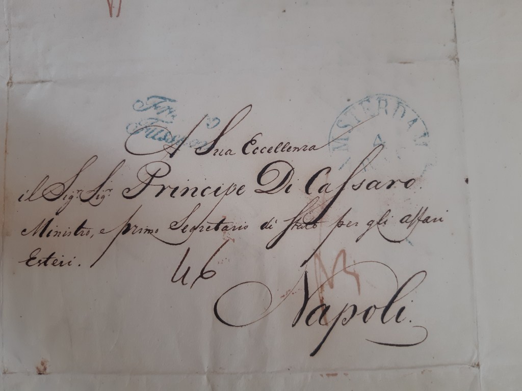Het artikel is onlangs verschenen, en geeft een mooi inzicht in het leven van een diplomaat, die een roerige periode twee werelden met elkaar verbond. Noord- en Zuid-Europa lagen toen veel verder uit elkaar: de reis was lang, oncomfortabel en gevaarlijk. De brieven werden waarschijnlijk met koetsen en schepen vervoerd, want de eerste spoorlijn van Italië (van Napels naar het koninklijk zomerpaleis in Portici) zou pas worden aangelegd in 1839.