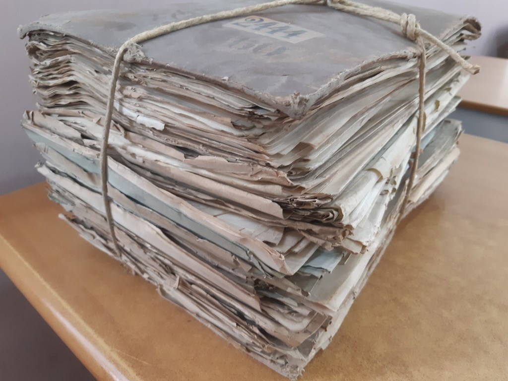 Ik zal nooit vergeten hoe ze aan kwamen lopen door de galerij, met de pakken papier bungelend aan de dikke touwen die eromheen gebonden waren, alsof het netten met sinaasappels waren. De 200 jaar oude brieven waren daardoor aan de randen omgekruld, stoffig en aangetast door vocht.