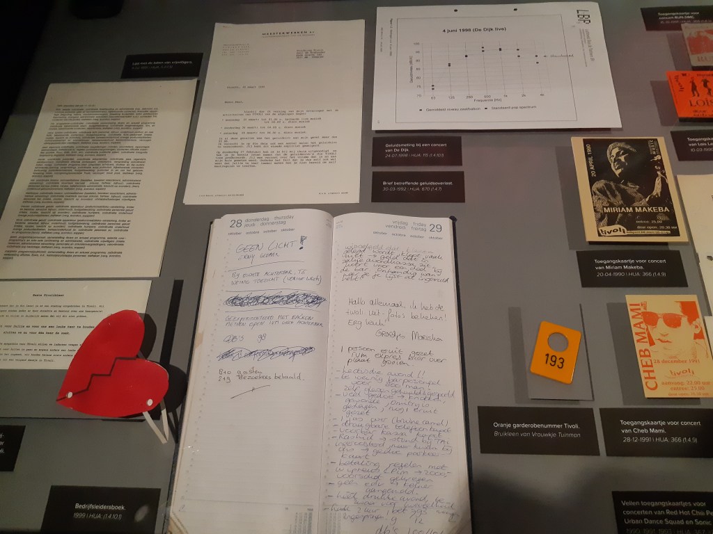 Maanden heb ik door 35 meter archiefmateriaal gespit om de leukste items uit te kiezen, waarmee in 12 vitrines de roemruchte geschiedenis van Tivoli wordt verteld, vanaf de eerste kraakacties in 1979 van het NV Huis tot aan de fusie met Muziekcentrum in het nieuwe paleis TivoliVredenburg.