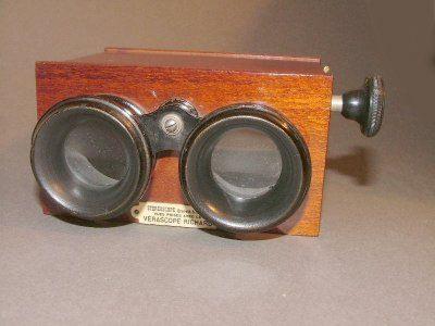 De verascoop is een stereoscopische camera uit 1893, waarmee 3D-foto’s gemaakt konden worden. Door twee foto’s te maken van hetzelfde, maar iets verschoven, ontstond een illusie van diepte. Hiermee werd eigenlijk de werking van de ogen nagebootst. Op het plaatje hierboven zie je een viewer waarmee je de foto’s kon bekijken.